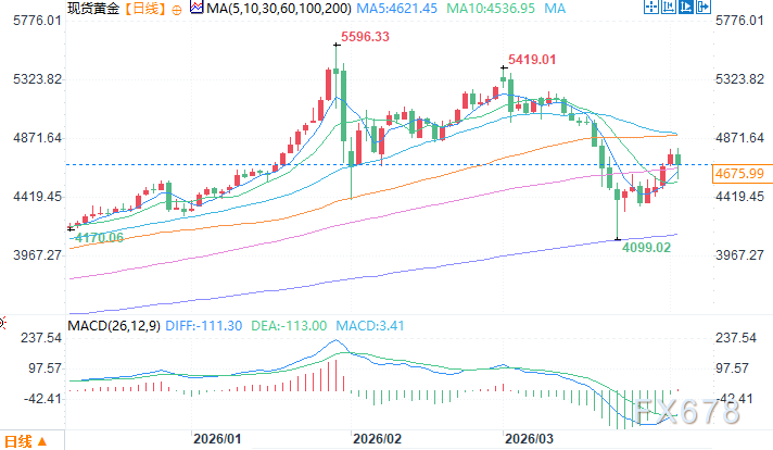 4月2日 现货黄金 收于 4675.99 美元/盎司