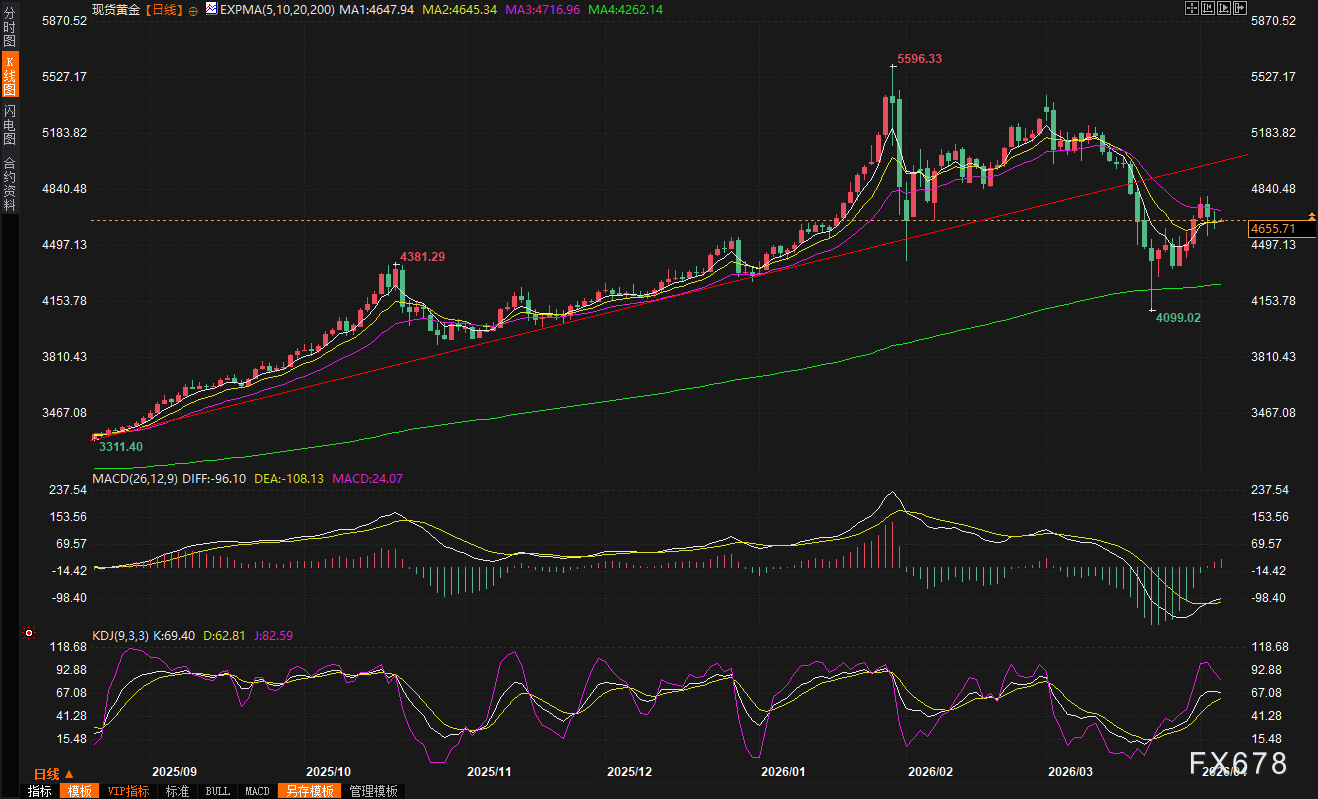 汇通财经APP讯——当特朗普在白宫复活节活动上说出“那一夜可能就是明晚”这句话时,全球黄金交易员的神经瞬间绷紧。周一(4月6日),黄金价格在4600-4700区域震荡,最终收于4650美元,小幅下跌0.55%。这个看似温和的跌幅背后,隐藏着一场关于战争、通胀和利率的复杂博弈。