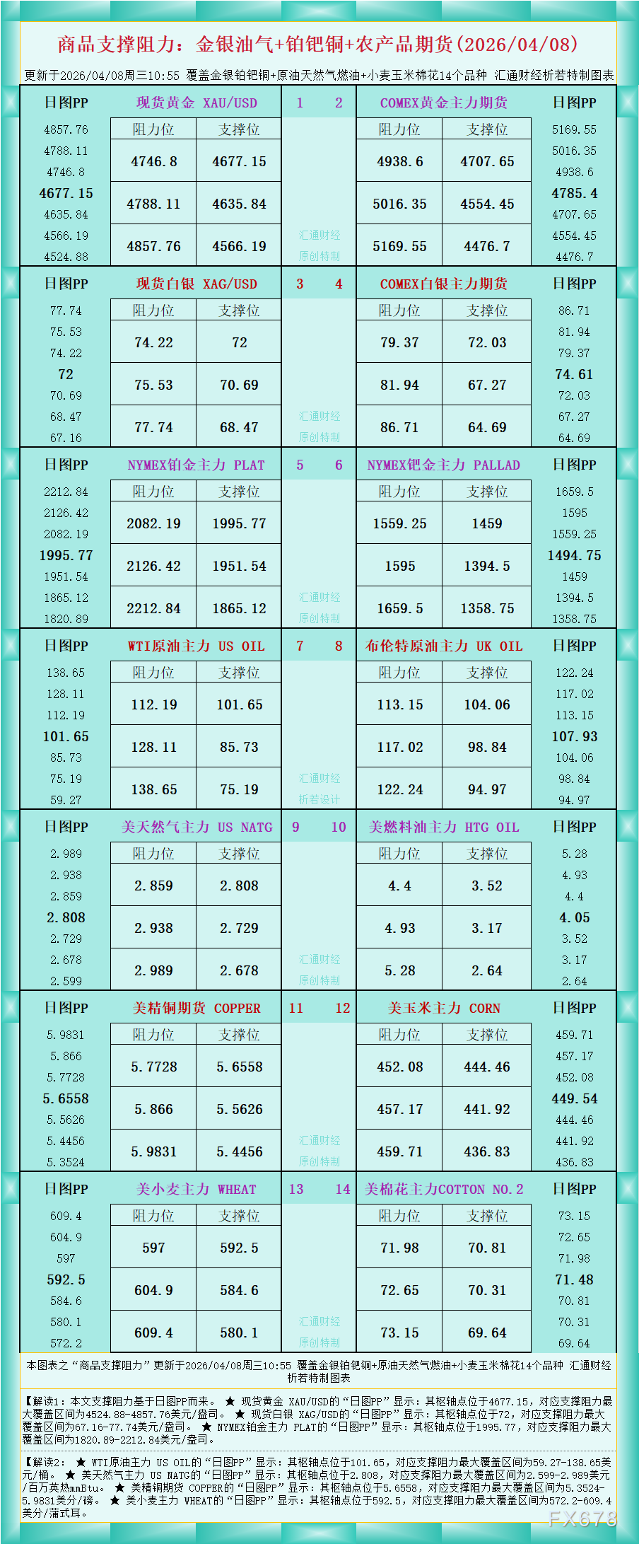 【图:黄金原油外汇股指枢轴点及多空持仓信号解读,来源:汇通财经特制图表。(点击图片放大看大图)】
