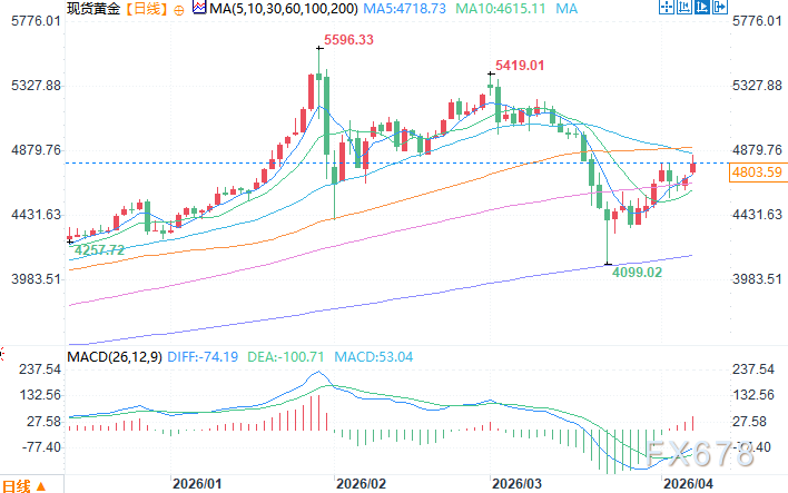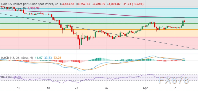 北京时间4月8日13:58 现货黄金 报 4826.83 美元/盎司。