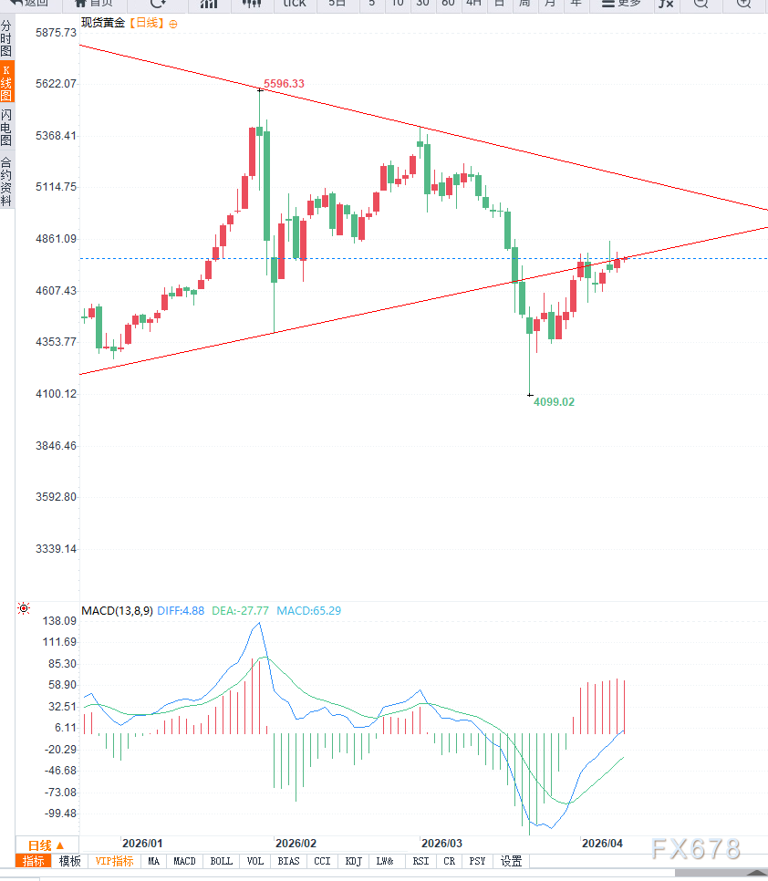 当前黄金市场的核心矛盾在于地缘风险与利率预期的对冲。一方面,中东局势与能源危机为黄金提供底部支撑;另一方面,油价上涨推高通胀预期,削弱降息空间,从而压制金价上行。未来走势将取决于美国通胀数据及美联储政策路径。如果通胀持续高企,黄金可能维持震荡甚至承压;若通胀回落,则金价有望重新获得上涨动能。在当前环境下,黄金短期或维持4700至4800美元区间震荡。