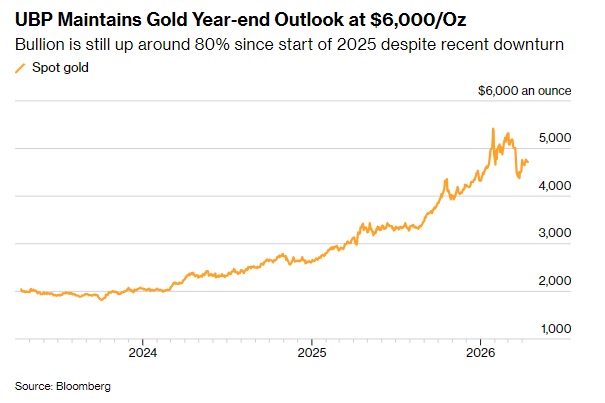 这家瑞士顶私人银行在将黄金敞口从约10%削减至3%后,正在逐步向自主管理客户组合中增持黄金。 自战争爆发以来,由于对利率上升的担忧以及流动性紧缩导致交易员为弥补其他损失而抛售黄金,金价已大幅下跌。 UBP亚洲区自主投资组合管理主管Paras Gupta在接受采访时表示:“在‘单边仓位’被清空后,我们已迈出了重建黄金组合的第一步。” 他补充说,机构投资者和零售投资者的黄金持仓现在“相当平衡”。 截至去年,UBP管理的客户资产约为1,845亿瑞士法郎(约合2,330亿美元)。 Gupta表示,在黄金敞口恢复到自主管理组合的约6%后,UBP计划进一步重建其黄金持仓,这些持仓主要包括以实物黄金支撑的交易所交易基金(ETF)。 他指出,随着结构性需求依然存在——包括中央银行购买、对财政赤字的担忧以及地缘政治紧张局势——该行仍预计金价将在年底升至6000美元/盎司。