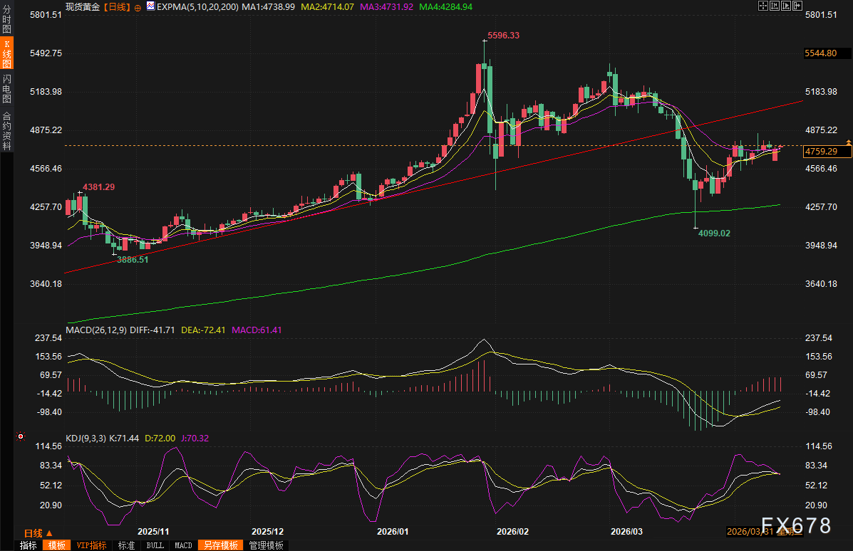 (现货黄金日线图,来源:易汇通)