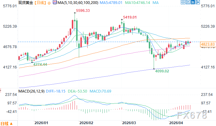 北京时间4月16日11:32 现货黄金 报 4823.83 美元/盎司