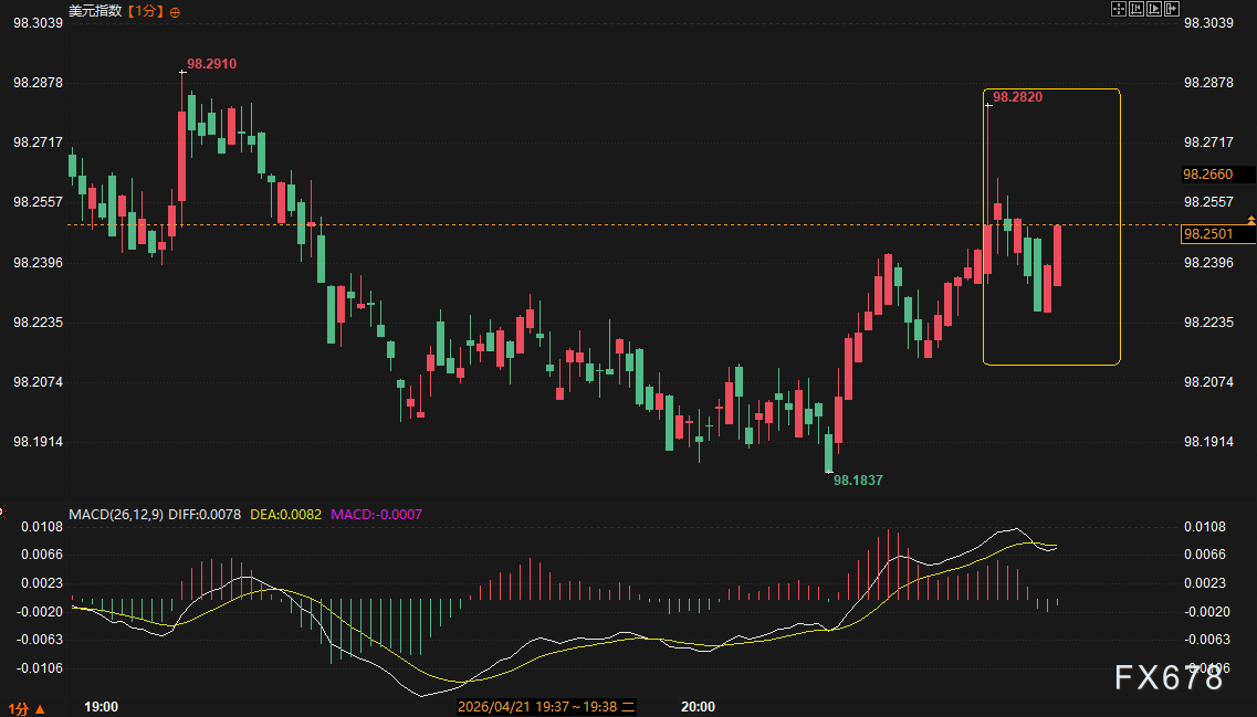 数据公布后的瞬间,市场经历了剧烈的双向波动。美元指数短线冲高,触及98.2820水平,但随后迅速回落,抹去全部涨幅。这反映出市场在初步消化强劲数据后,开始担忧高通胀对长期增长的负面抑制。