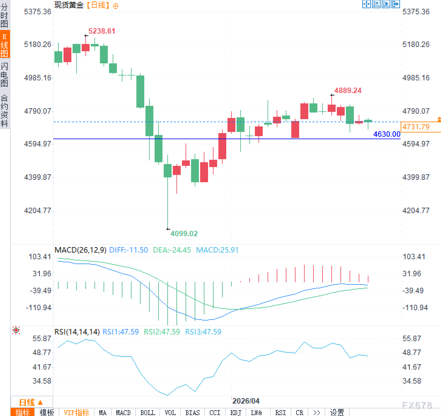 汇通财经APP讯——4月23日周四,现货黄金价格小幅承压,较前一交易日下跌约0.2%,盘中一度下探至4700美元每盎司附近。这一走势主要受美元小幅走强以及布伦特原油价格维持在100美元每桶上方双重压力所致,后者因美伊和平谈判陷入僵局而持续推高能源成本,重燃市场对通胀的担忧。