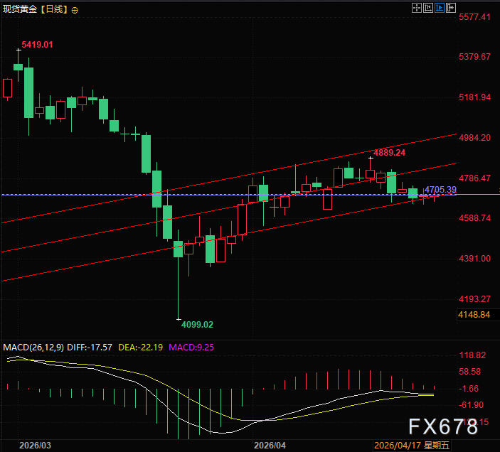 技术面现货黄金依然守住4705关键价位,本周有望沿着上升通道下轨开启反弹。