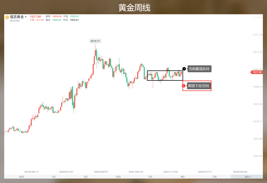 借助图片表达应该会更加清晰,首先加息这件事在我看来一直都是25个基点,落实下来实际上也不存在意外,但我们的确需要市场对50个基点进行预期,想要达到这个目的,就需要通胀再创新高,而这件事一旦发生,市场就有可能会对50个基点进行充分的计价,走出震荡也是分分钟的事,不过这也伴随着另一个问题,估计你们也发现了,就是美联储只要是25个基点落地,黄金就会当场起飞,但事情推进到那个时候,我们也不怕它上拉了,因为空间下移之后,即便是上拉,顶部也已经相比现在要低了很多。