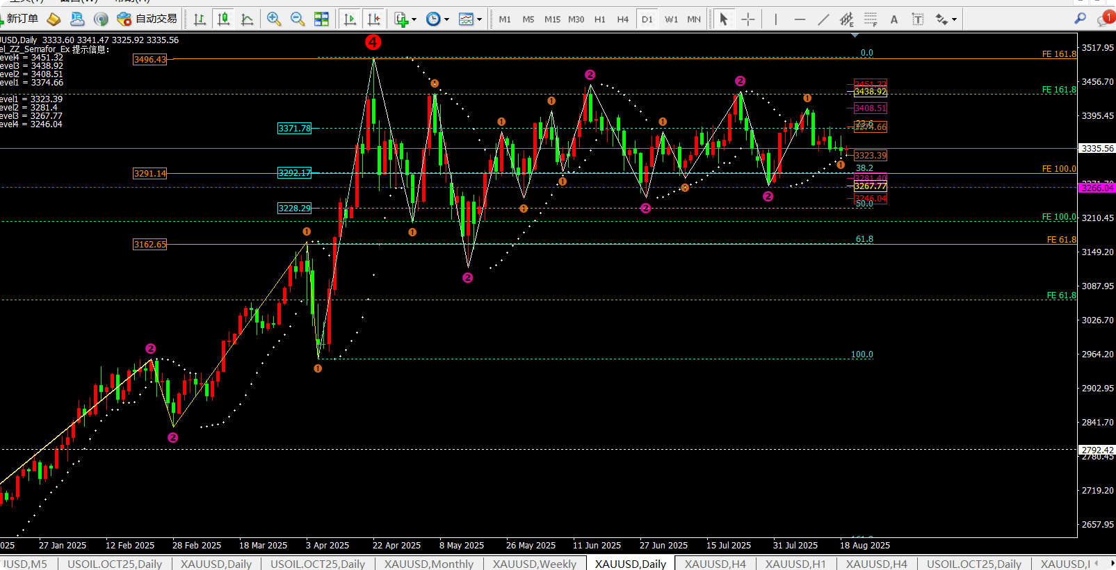 黄金, 周一全天多空来回拉扯,早间开盘下探3323美元/盎司后快速拉到3358美元,看似很强的上涨没有延续,我在《RWA是什么?黄金能多吗?》文中提及看多但不追多,震荡行情延续性很差。