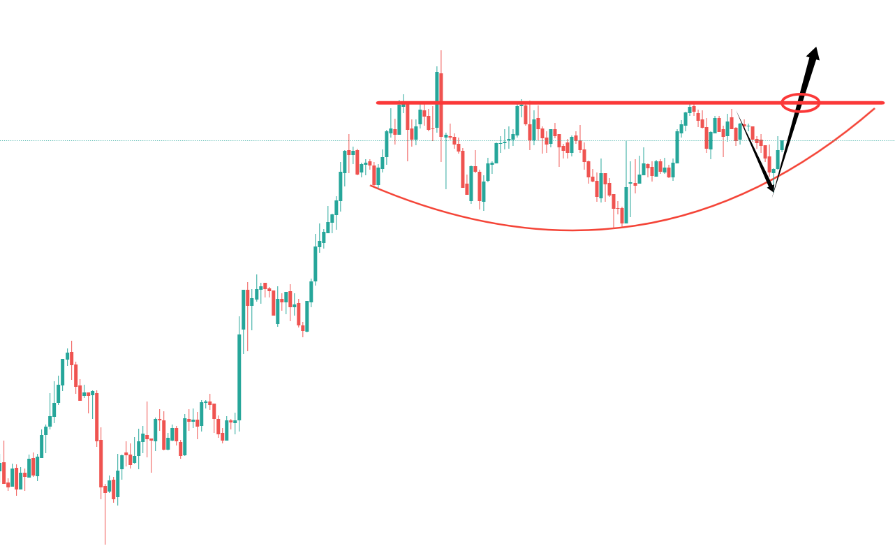 其实今天早上下跌我还是挺开心的,因为整个黄金横盘底部其实是个弧形整理,这种弧形整理的典型特征就是,高位呈水平位,就是当前的3655,而底部两侧平行,中间最低,这就是为啥我很关注3600到位的原因,上周我看跌就是为了得到3600嘛,可是最后也没给到,提前在3620之上回踩反抽,就意味着弧形底部已经形成,大概率要继续上推。