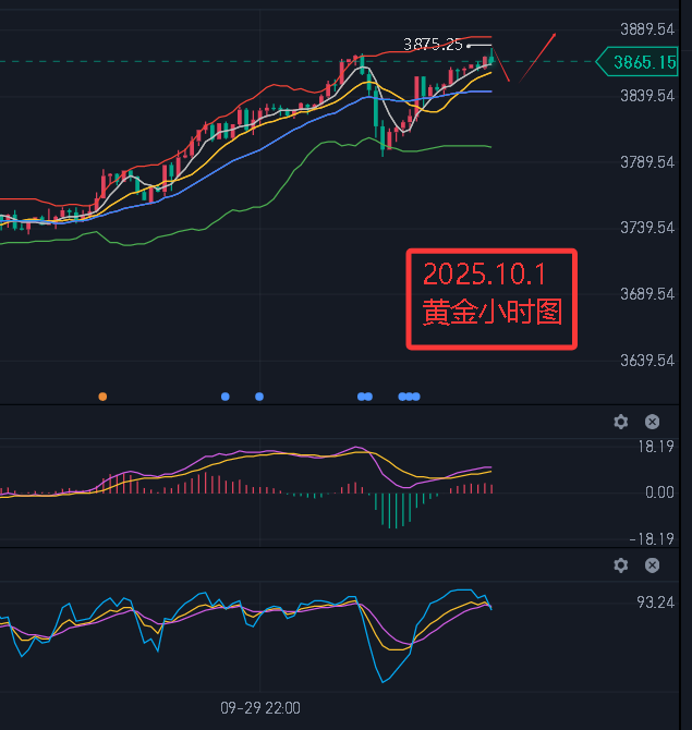 现货黄金(伦敦金):技术面上来看昨日日线收了一根小阳柱,布林带大开口,KDJ指标金叉放量,目前来看大趋势仍旧偏上,中线阶段性上行,这也是我们这段时间一直坚持的思路。短线4小时图中来看,布林带开口,KDJ指标形成金叉 。小时图中来看,布林带开口 ,KDJ指标形成死叉。短线价格如期回调休整,目前短线先仍旧关注震荡回调休整的情况,下方支撑关注3843/3823/3792一线,上方压力关注3875/3888/3903一线。