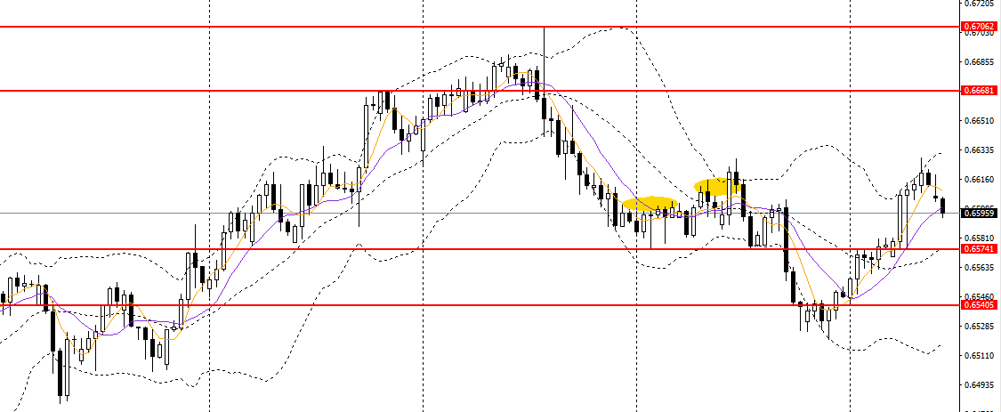 澳美日线呈前进三兵,上破10日均线,日线RSI上扬,4小时触及前高0.6630附近,短线走势偏强,但多头力量减弱,多单建议做好保护,如于0.6570附近再度企稳可做多。