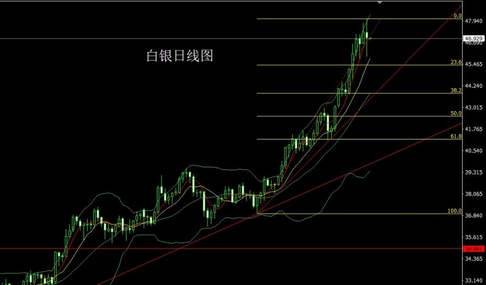 白银:下方37.8的多和38.8的多减仓后止损跟进在42持有。上周五44.6的多减仓后止损跟进在44.8持有,今日47.9空止损48.1目标看47.2和46.6和46.1.