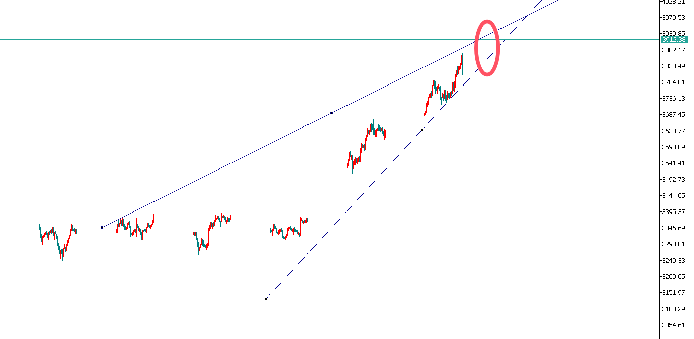 一句话看懂黄金Gold:强势上破创新高,短期指向通道上沿3950。