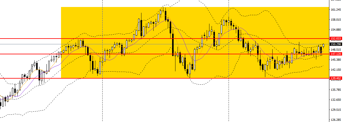美日上周收长阴线,站上5周均线,波段有望延续上行。周五小幅反弹,今日亚盘大幅跳空上行,创下2个月来新高,日线RSI位于50上方,短线走势极为强劲,多单可继续持有,如维稳于150上方,可继续上看至150.8-151。