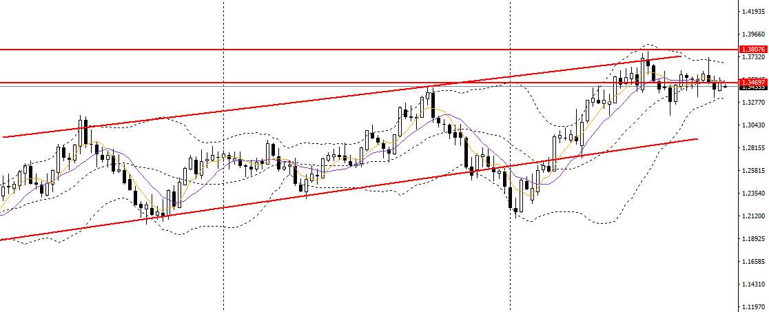 镑美上周收小阳线,RSI位于50左右,波段预计将维持高位震荡。日线呈多方炮,4小时未能有效站上1.3470一线阻力,可维持1.34-1.35区间内高抛低吸的思路。