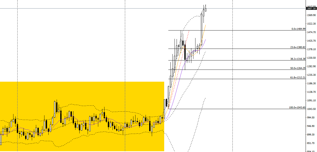 铂金上周收长阳柱,刺破周线布林上轨,波段预计将延续多头走势。周五大幅走高,日线RSI到达高位,4小时升破前高,短线走势仍偏强,1590上方可维持多头思路。