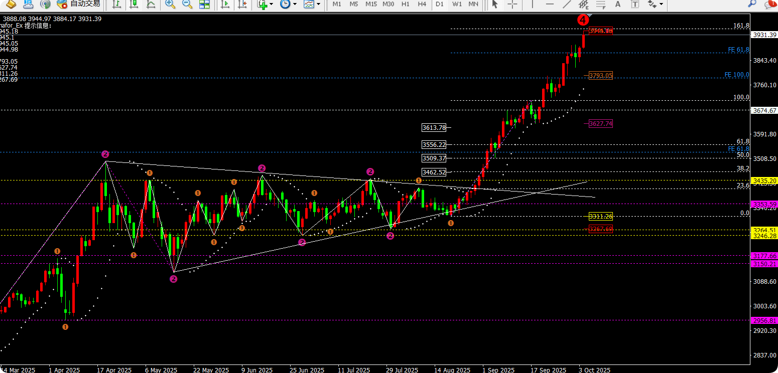 上周五,美指微幅下挫。美国政府关门引发的"贬值"交易推动全球风险资产反弹,比特币价格再创历史新高。随着政治和经济不确定性加剧,投资者正将资金转向比特币、黄金等资产以对冲美元贬值风险。金价周一亚盘冲高至3920,全球最大加密货币10月5日在亚盘最高触及125,689美元,创下历史新高。