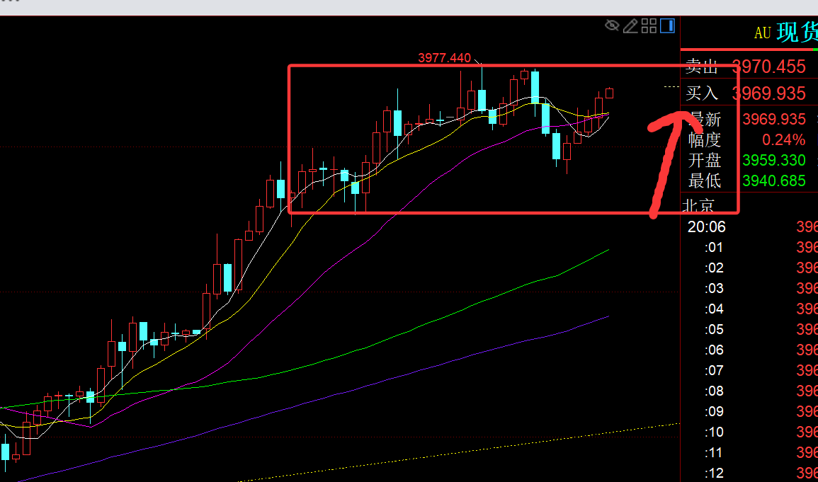 第一,黄金方面:昨日又是一天的持续逼空走高,早间依托小时线10均线3899直接拉升,突破站上3900关口,只有欧盘期间,出现短线小范围的洗盘,先阴线收盘失守了10均线,再大阳反补回去,一直到现在还未有效破10均线,最高已触及3977,离4000真不远了;现在的波动基数都放大了,不仅方向重要,位置也要尽量卡相对好的,不然是很容易搞刺穿;