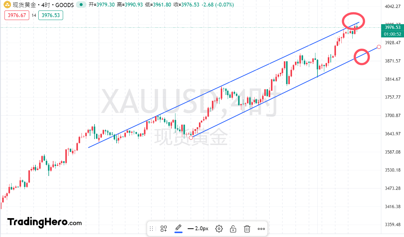 消息面:在美国政府停摆进入第八天且尚无解决迹象的背景下,金价突破每盎司4000美元大关。美国政府停摆为金融市场增添了不确定性,导致对美联储决策至关重要的美国经济数据延迟发布。不过,交易员仍预计今年美联储还将再降息两次。与此同时,法国的政治动荡以及持续的地缘政治风险,继续推升市场对避险资产的需求。高盛集团将2026年12月的金价预期从此前的每盎司4300美元上调至4900美元,其理由包括黄金交易所交易基金的资金流入以及各国央行的购金行为。未来几个月,黄金与美元之间的负相关关系或有助于提振金价。尽管近日黄金期货与美元同步上涨,但过去一年间,黄金与美元始终保持着显著的负相关关系。预计到2026年第一季度末美元将贬值4.4%,这一走势可能会进一步推动金价上涨。到2026年第二季度,金价或将升至每盎司4500美元,目前很难找到任何可能导致黄金市场走弱的利空因素。本周需关注今晚的非农数据及周四凌晨即将公布的美联储会议纪要。