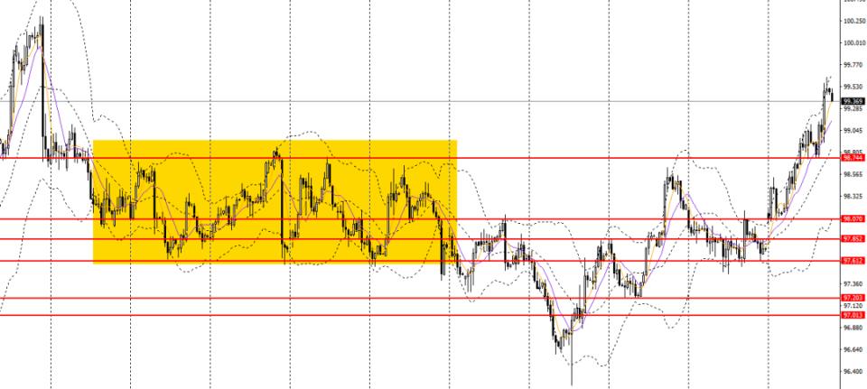 美元指数延续上行,日线RSI到达高位,4小时升破99-99.20压力带,上行空间打开,如继续升破前高,短线可上看至100。
