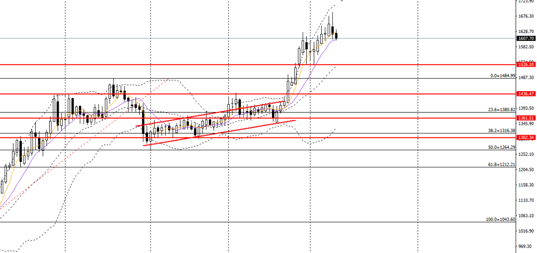 铂金破高反跌,失守5日均线,日线RSI回落,1680附近面临强压,短线趋势转弱,后市预计将下探1600关口,如进一步失守,可看空至1550。