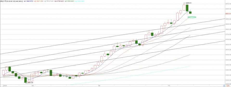 3930附近也是差不多是这波黄金多头的起涨趋势线。