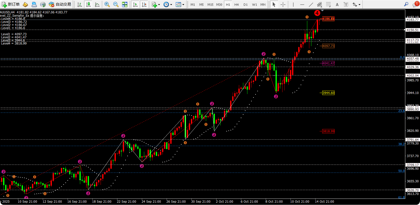 ①日线指标macd金叉高位放量,灵动指标sto超买依旧代表日线的多头走势。同样我们关注点是均线MA5和MA10的支撑分别对应4083.6-4015一线。