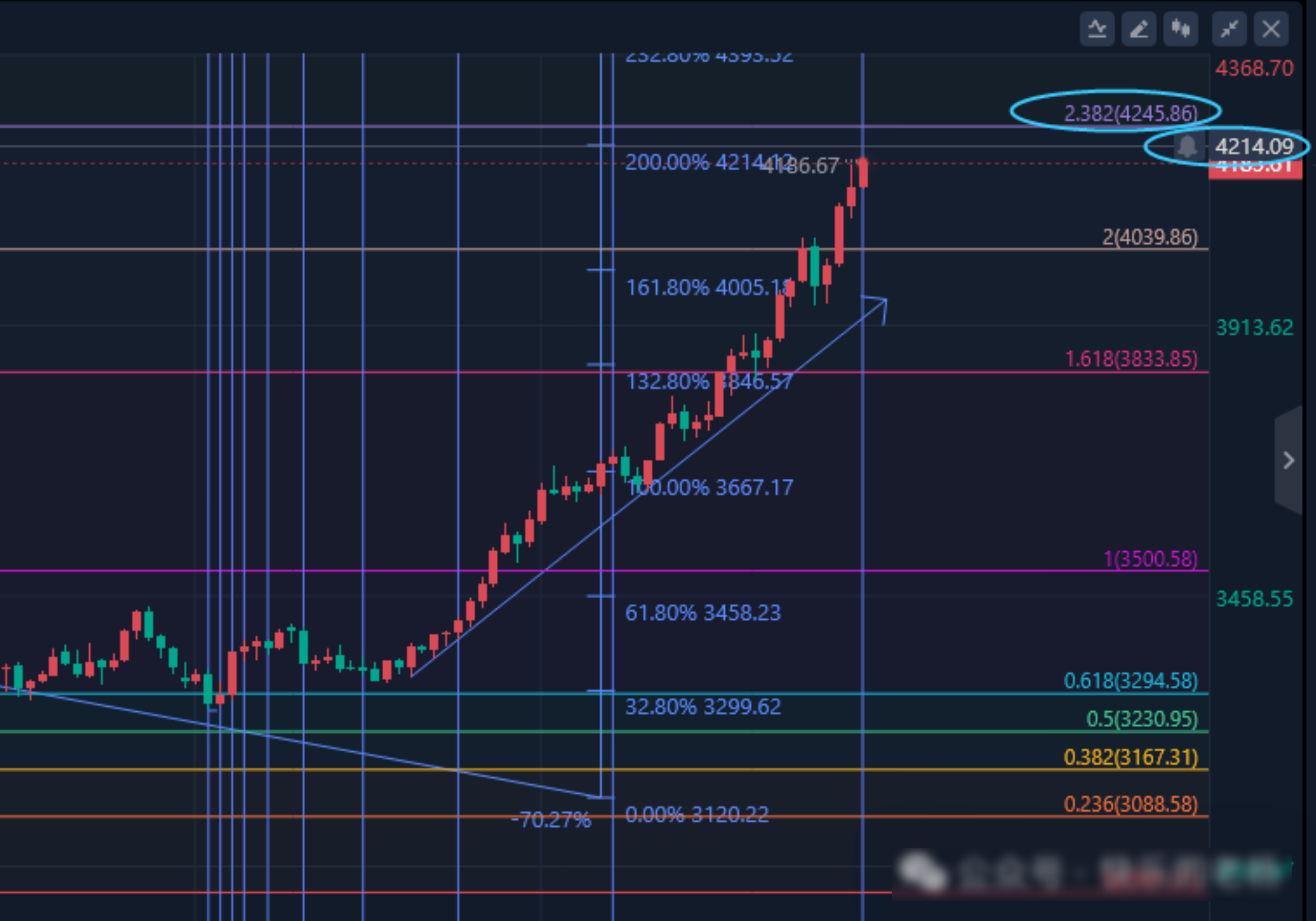 最终,黄金4090区域止跌,美盘在美联储主席鲍威尔和美国总统特朗普助攻下,黄金继续走强,日线以中阳线收盘。