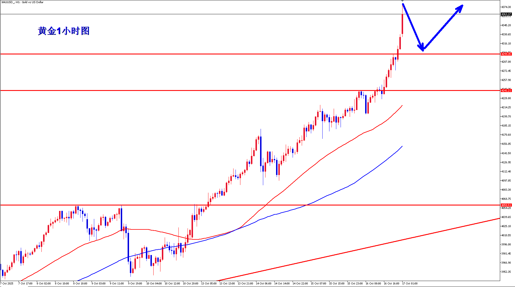 昨天黄金走了一个大涨的行情走势,走势完全在老夏把握当中,大家都见证!昨天黄金开盘在4207.9美元一线,早上黄金小幅回踩触及4200美元一线关口后企稳开启强势上涨走势,亚欧盘黄金持续强势上涨,基本不给回踩到4200美元以下进场做多的机会!老夏下方在4187美元一线布局多单未能给到进场机会!这样的行情走势不给进场机会,那么我们就不去操作!稳健大赚是第一位!我们只做属于自己的行情即可!黄金欧盘都是企稳在4200美元一线关口上方,美盘再次开启大涨走势!美盘黄金大涨最高触及到了4330.5美元一线!且强势收尾,最终收盘在4329美元一线!日线以一根下影线稍长的饱和大阳线收线,而这样的形态收尾后,今天早上黄金肯定是惯性上冲一波!随后并伴随多头拉高出货,多头利润了结开始回落走势,我们早上也是在4363美元一线和4370美元一线做空进场!黄金如期大跌4350美元一线全部大赚!周五完美收官!本周又是全胜!周一4027最低点抄底做多,周五今天4370美元一线高点做空大跌4350美元一线!目前继续下看,下方有望触及4321美元一线!具体以老夏实时指导为准!