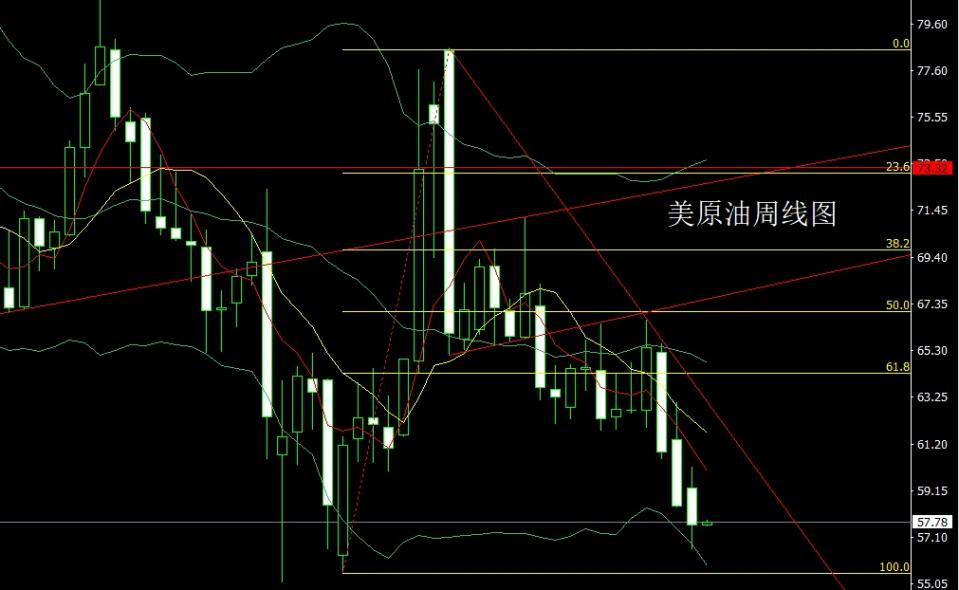 美原油市场上周高开在59.29的位置后行情小幅拉升给出60.2的位置后行情强势震荡回落,周线最低给到了56.58的位置后尾盘拉升,周线最终收线在了57.65的位置后周线以一根上下影线等长的大阴线收线,而这样的形态收尾后,本周先回落57多止损56.5,目标看57.7和58.2-58.7和59.2离场准备空。