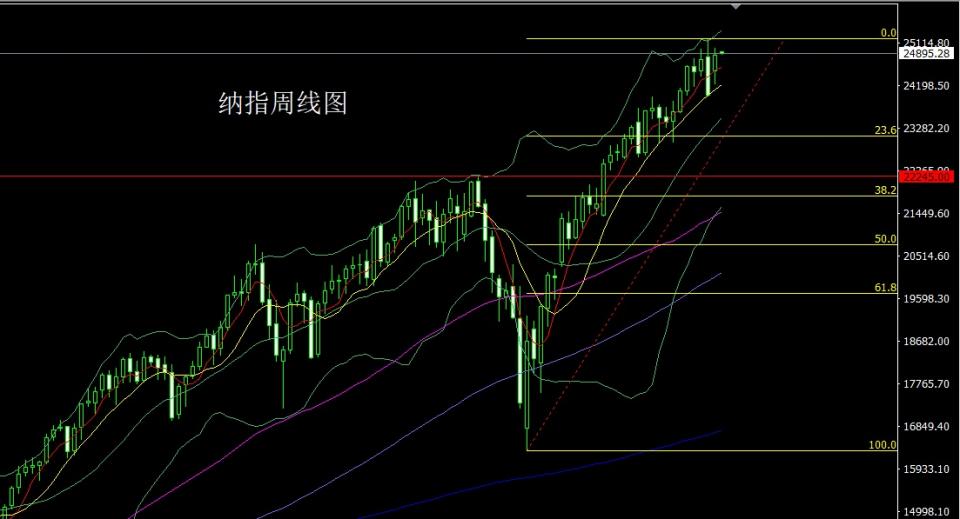 纳指市场上周低开在24529.79的位置后行情大区间整理,周线最低给到了24233.12的位置后行情强势拉升,周线最高触及到了25009的位置后行情回落,周线最终收线在了24860.69的位置后,周线以一根下影线长于上影线的中阳线收线,而这样的形态收尾后今日24600多止损24540,目标看24950和25000和25100和25200压力。