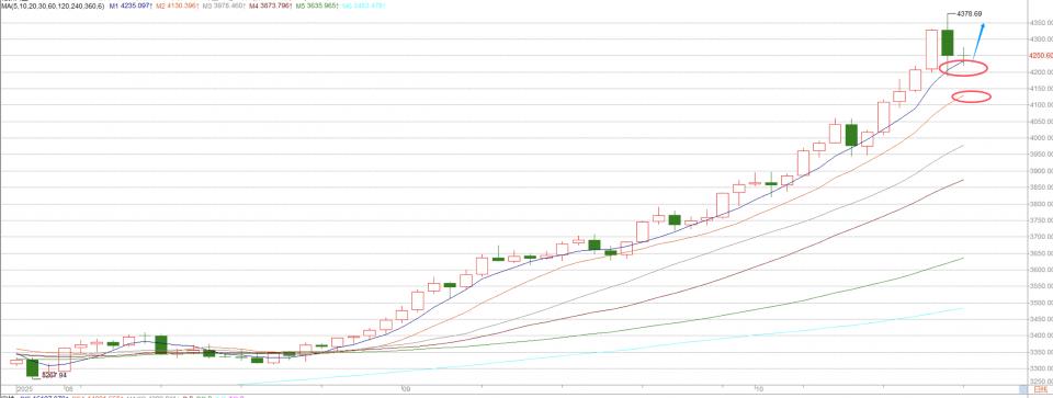 从4小时行情走势来看,目前上方关注短期压制4280-4293一线,重点关注4315-23一线压制,下方关注4185-4193一线支撑,多头若得不到持续突破,那么即将迎来后市震荡调整期,操作上以区间来回把握为主,中间位置一律多看少动谨慎追单,耐心等待关键点位进场。具体操作策略我会在盘中提示,及时关注。