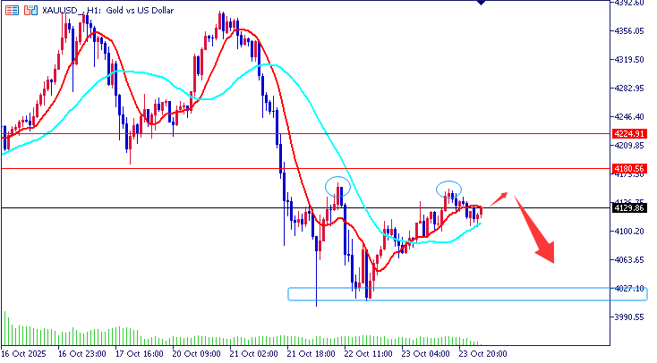 黄金还是维持看跌思路不变,但当前黄金走势没有特别强势,所以我们等反弹后再空,4150附近即可继续进场空,上方还是关注4180的关键阻力,下一目标是4070区域!