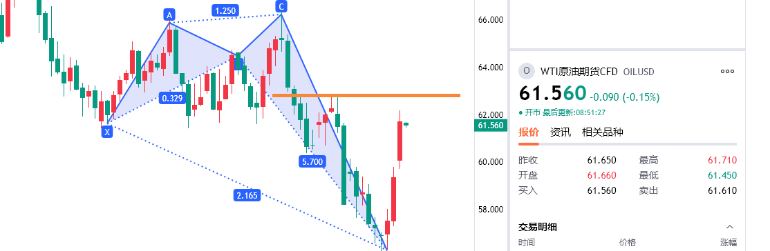 原油反弹62.3附近空,防守63.2,目标看60/59一线