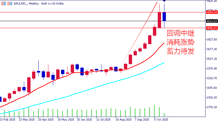 短期走势:从技术角度看,黄金周线九连阳后,价格处于相对高位,存在超买情况,本身就有回调需求。昨晚美国公布的9月CPI数据显示,整体CPI同比上涨3.0%,低于市场共识预期的3.1%,剔除食品和能源的核心CPI同比升3.0%,同样逊于预期的3.1%,月环比仅0.2%,低于预期的0.3%。数据公布后,黄金短线走高约30美元,但随后有所回落,说明市场在消化数据影响的过程中存在一定分歧。