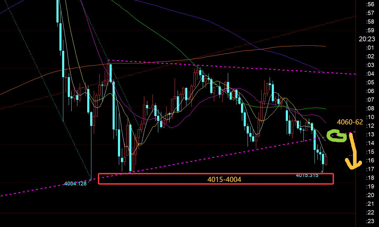 观点逻辑:1. 金价4000附近多单观点, 止损3990, 止盈4050----4090附近,跟踪止损300点。