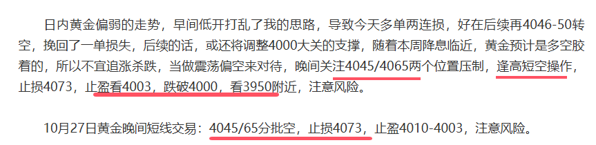 晚间黄金如期下跌,我给的分批空,有所收获,也抵达了4003的目标位,后续的话,重点观察4000大关支撑,要是破位,则后市可能去3950附近去了,注意风险。若是异常坚挺,后面还是震荡,不宜追空。