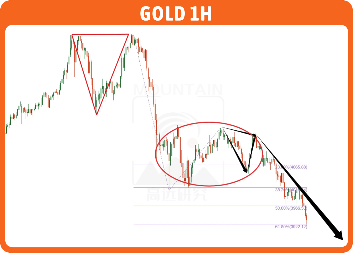 所以只能守株待兔,不要盲目进场,具体可以等待晚上反弹,上方3960是一个不错的交易机会,进场后折损给到80,顺带去看3900点的破位,直到3880目标到位为止,不要惊叹,黄金日内下跌最基本是120美金的幅度,你还怕给不到更低?4小时旗形终点可是到3670附近呢,我都没敢直接看那。