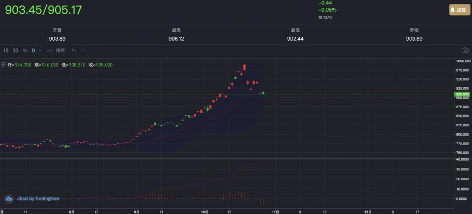 价格目前围绕903—905区域震荡,下方900附近为日线中轨支撑,只要不跌破中轨,多头格局仍然成立。上方压力集中在915—920,突破后有望打开新的上涨空间。