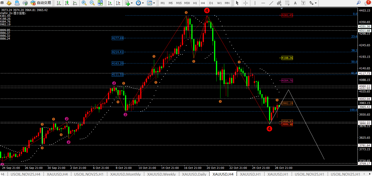 黄金昨日开盘从3986附近震荡至日内高点4019.5一线出现回落并跌破3970的低点到达天成所说的目标点3886附近,之后价格低位震荡后反弹3965一线。早间价格再度回撤3916附近后反弹拉升3982一线。