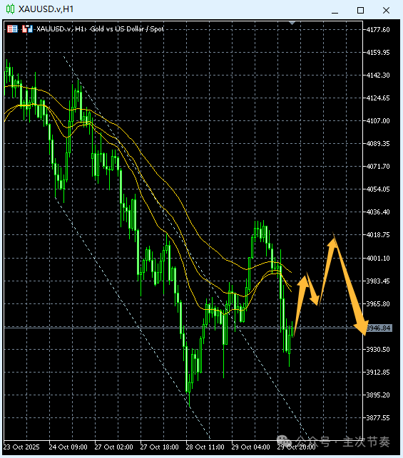 上个交易日,山海强调在美联储利率决议之前,黄金看好反弹至4020,在公布利率决议后要看市场反馈,如果利多黄金可能会去4100,如果利空表现会有50美金左右的下跌,实际上亚欧盘黄金走出如期的上涨,最高在4030,但鲍威尔讲话内容打压的黄金上涨的延续性,导致黄金走出了扫盘的跌幅,所以,黄金在周三并没有形成强势多头,而再次形成低位震荡状态。从市场表现来看,黄金的避险和多头的因素一点没有变,未来市场都是看涨黄金基础,虽然暂时在低位扫盘震荡,但不影响大趋势看涨节奏,所以,现在是耐心等待趋势行的时候。既然现在是低位震荡,那么交易的话需要做高空低多操作。从技术面来看,日线周期还是收口状态,暂时低点也没有破位,日线收阳的概率还是比较大,周四日线收阳,周五就还有上涨空间,H4周期布林也是收口状态,不存在大涨大跌的可能,所以,今天计划是边看涨,边看力度。早盘黄金在3917附近直接上涨,并且力度比较大,那么,延续这个走势,黄金要做回落多单,下方支撑在3940附近,上方则继续看4020,4020破位则再看4100本周目标点。