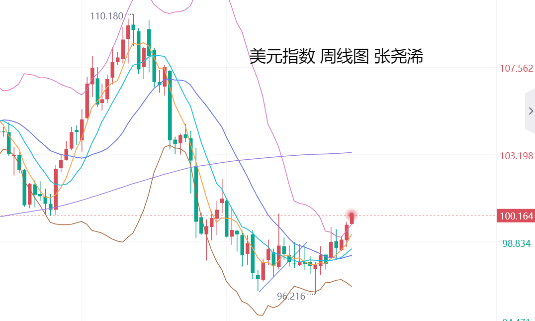 但目前未能进一步跌破10周均线支撑,因而短期有震荡波动,待重回5周均线上方转强的倾向,反之如跌破10周均线支撑,则将进一步再度回踩之前的多次看涨反弹起涨位置,中轨线及30周均线支撑,并就此再度展开又一次的牛市拉升。