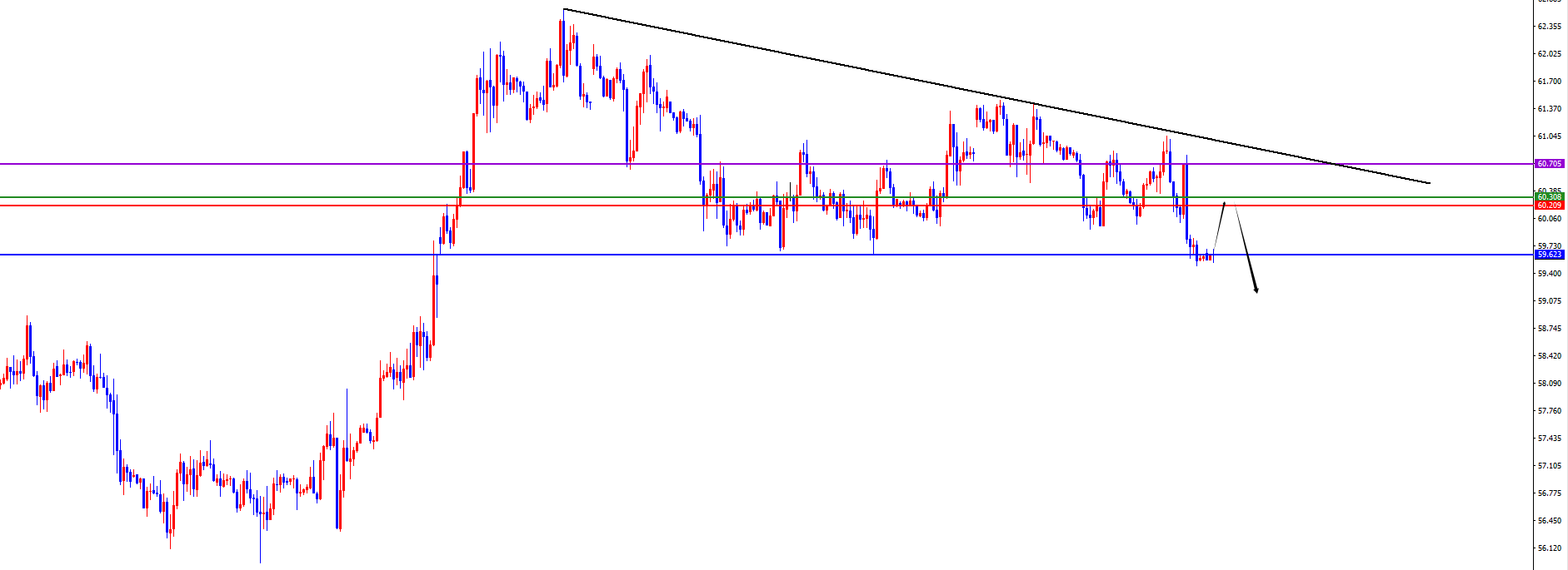 整体上目前处于59.60-61.50区间震荡,打破区间才会发力