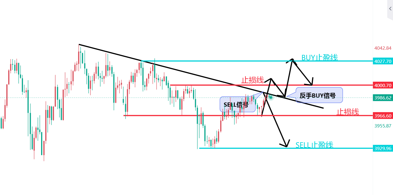 如果涨破4000之上,等待回落3980附近买涨,目标看4030,回撤带在3965.