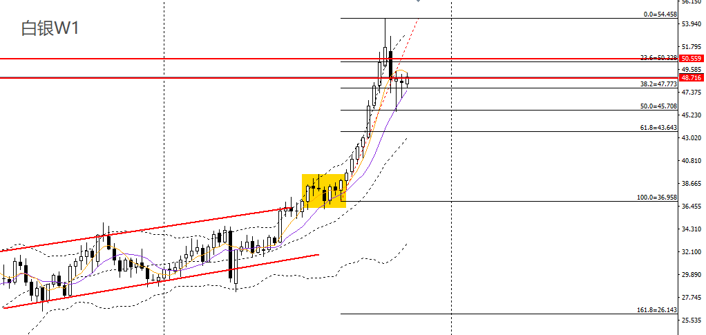 白银上周收十字星,回踩10周均线企稳,RSI位于高位,波段仍有望冲击前高。周五收流星阳线,站上5日、10日均线,4小时一度刺破49关口,如守住48.70,多单可继续持有,后市有望上探49.30。