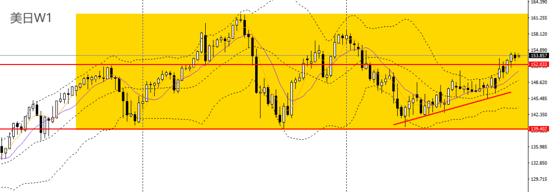 美日上周微幅收跌,持平前高,RSI位于高位,波段有望延续震荡上行。周五止跌反弹,今日亚盘跳空走高后迅速回补缺口, 4小时回踩152.80-153支撑带企稳,短线趋势转多,多单仍可持有,后市不排除将再度上探前高154.40。
