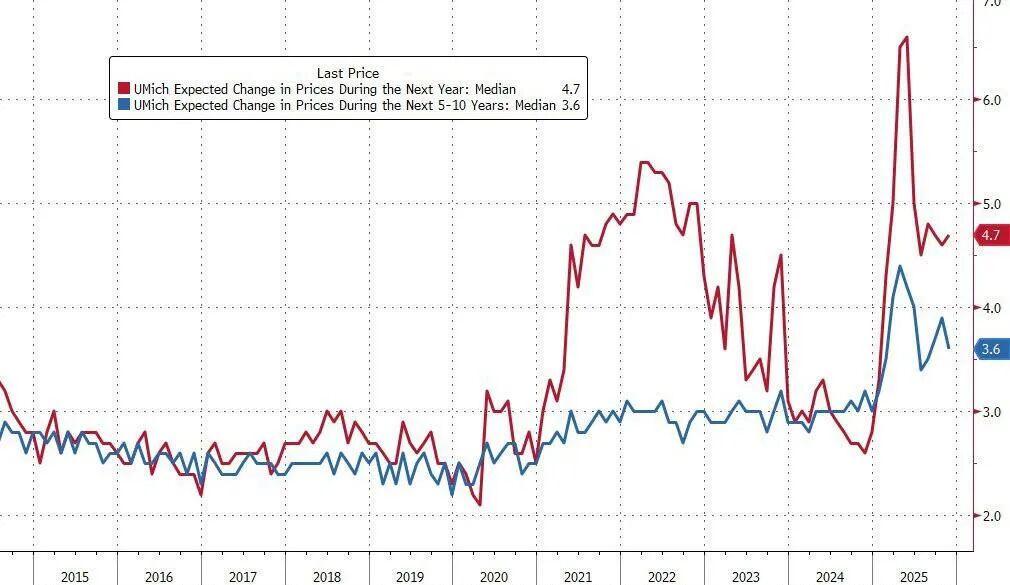11月密歇根大学1年通胀预期初值4.7%;5年通胀预期初值3.6%。