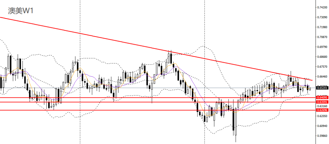 澳美上周阴跌,5周、10周均线走平,波段仍趋于震荡。周五企稳回升,上破5日均线,日线RSI升至50左右,4小时再度站稳0.6450附近支撑,呈双底,0.65附近企稳可进多,短线可上看至0.6540,0.6570。