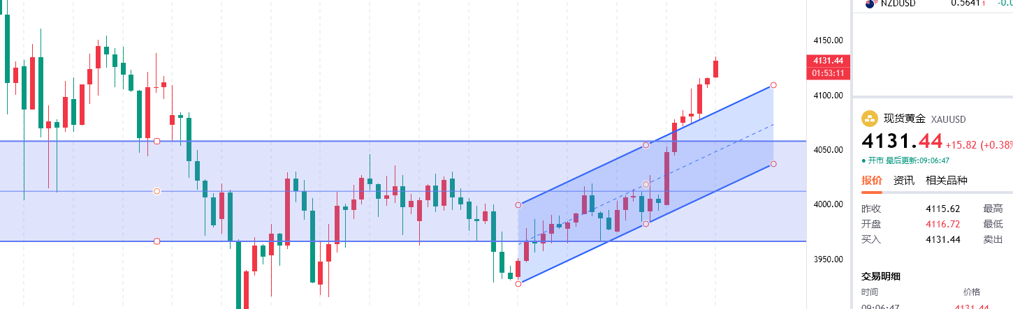 美政府停摆41天超历史记录,虽然参议院周日推进了一项折中议案,旨在重新开放联邦政府并结束停摆,该议案已初步扫清障碍,虽需众议院批准并经特朗普签署,目前依旧存在一定不确定性,同时停摆结束后关税的压力会继续重新回归,加上上周公布的就业以及消费者信心指数还有制造业数据疲软,短期给足了美元指数压力,同时这些数据也给美联储降息增加了几份预期,美元指数的大幅回落给了一定佐证,黄金在上个交易日早间开盘之后就强势拉高一度触及4052附近小幅回踩4037附近如期再度拉伸,在欧盘突破4060压力惯性走高触及4086附近,美盘先是冲高4105附近走出一波回落最低触及4074一线也是晚间我们跟大家分享的接多位置,然后晚间如期拉高最高触及4120附近,早间开盘直接再度延续强势目前最高触及4136附近,上方关注4155附近压力情况,回踩继续接多看多头延续即可。